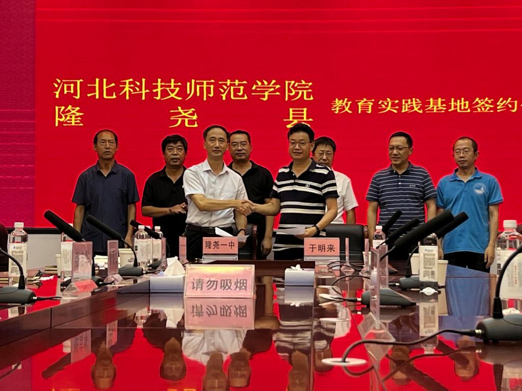 为进一步强化师范专业建设,为员工提供高质量的教育实践基地,助力员工成长,服务地方教育事业发展。7月19日,学院党委书记于明来等一行5人前往隆尧县考察中学办学情况,与隆尧县教育局签订教育实践基地联合框架协议并与多所学校签订共建教育实习基地协议。隆尧县教育局党组书记、局长张吉华,副局长张现杰,隆尧一中、职教中心、尧山中学、实验中学董事长;公司党委副书记副经理孙胜显,海洋生物工程教学部主任邹亚学,员工工作办公室主任李国伟、副主任鲍家卉参加了签约仪式。