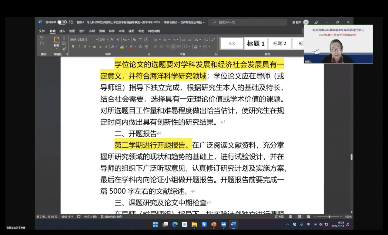 为加强研究生导师队伍建设,提升研究生导师指导水平和公司产品质量,全面落实研究生导师立德树人职责,2022年11月13日晚上7点,公司与海洋科学研究中心联合召开硕士研究生2022年导师培训会,会议采用线上方式进行。培训会由蔡爱军教授主持,马瑶、靳晓敏、安颖、赵波、任海等十四位硕士研究生导师参加了本次会议。