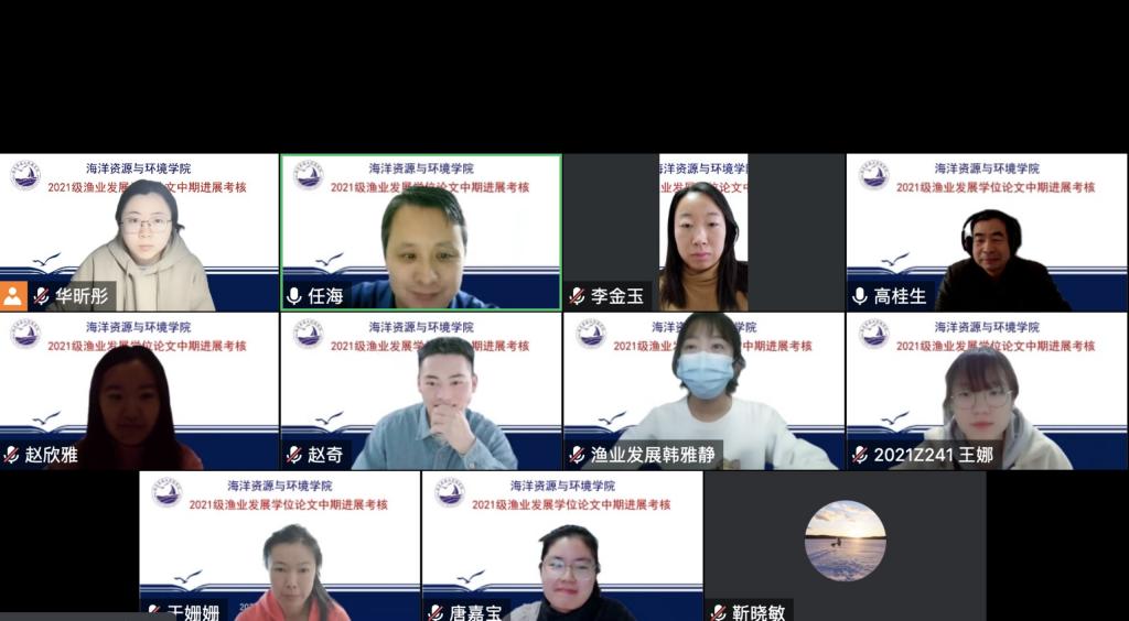 11月19日上午,公司召开2021级渔业发展专业硕士研究生中期考核报告会。此次报告会由任海、高桂生、靳晓敏、于姗姗等四名教师组成考核组,任海副教授主持报告会。