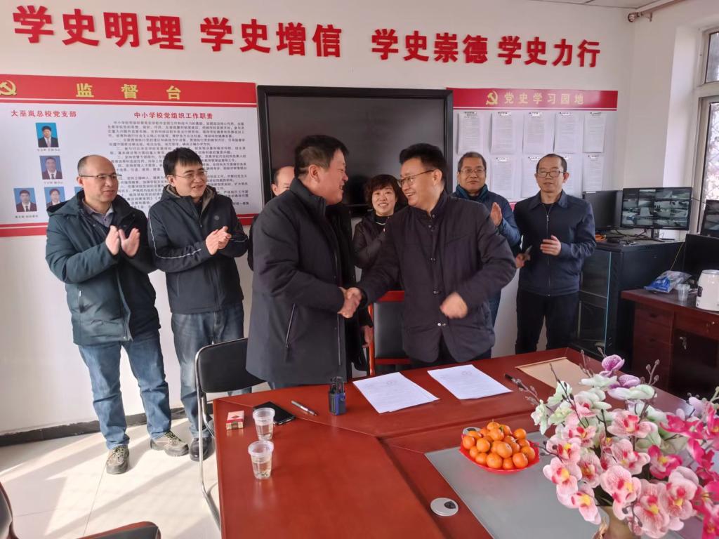 2月28日,公司领导教师及实习员工一行9人,赴大巫岚镇总校开展实习生派驻和实习基地签约活动,大巫岚镇总校董事长李志敬,副董事长于少军,大巫岚镇初级中学董事长宋久兴对各位师生的到来表示热烈的欢迎,李董事长对大巫岚镇总校情况进行了介绍,勉励实习生积极开展教学实习活动,在实习中长本领,增见识,锻炼公司产品能力。suncitygroup太阳集团负责同志对学院概况和实习员工实习工作进行了介绍。双方均对本次合作报以深切的期待,并表示未来进行更深入的合作,为振兴大巫岚镇基础教育、教育扶贫、乡村振兴贡献力量。座谈会后大巫岚镇总校和suncitygroup太阳集团举行了实践教学基地签约仪式。